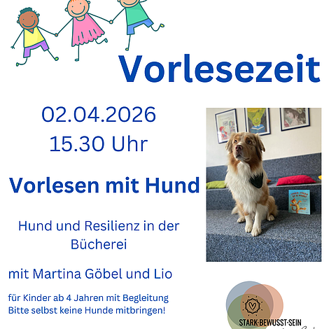 Vorlesezeit Special: Vorlesen mit Hund am 02.04.2026, 15:30 Uhr