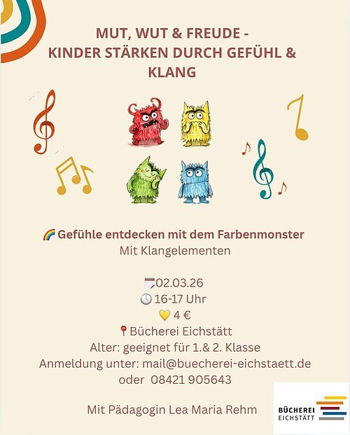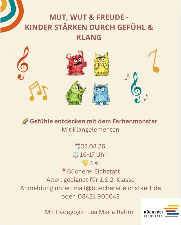 Anmeldung: mail@buecherei-eichstaett.de; 08421 - 905643 (Teilnehmerzahl begrenzt)