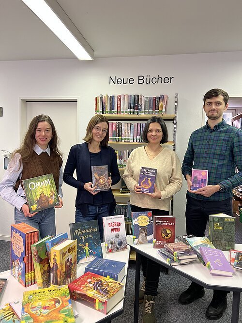Die Ukrainische Gemeinde hat auf Initiative der 1. Vorsitzenden Tetiana Umin eine bereits existierende Sammlung an die Bücherei übergeben, um sie einer größeren Öffentlichkeit zugänglich machen zu können. Außerdem wurden Verlage kontaktiert und weitere Titel besorgt, so dass nun insgesamt rund 280 Titel für alle Altersgruppen zur Verfügung stehen. Im Angebot sind Kinder- und Jugendbücher, Krimis, Romane, Klassiker, aber auch Sachbücher zu verschiedenen Themen - eine schöne Ergänzung zu unserem Bestand!