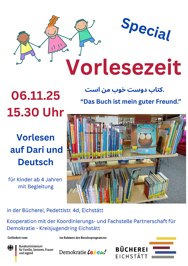 Unter diesem Motto laden wir zusammen mit der Koordinierungs- und Fachstelle Partnerschaft für Demokratie des Kreisjugendring Eichstätt zu einem weiteren Special unserer Vorlesezeit ein.